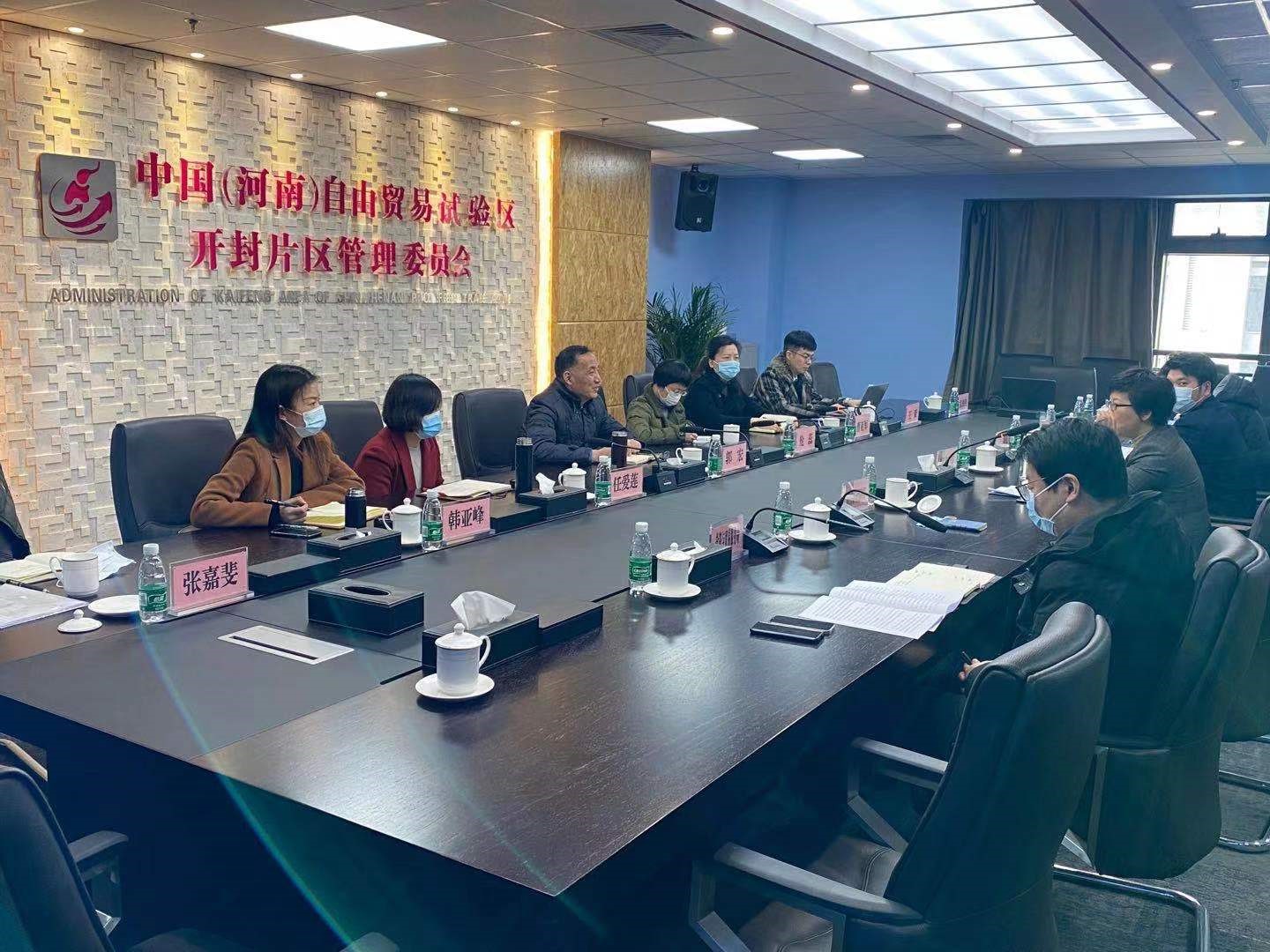 2021年2月4日上午,为确保高质量开展《中国(河南)自由贸易试验区“十四五”规划编制》工作,河南财经政法大学中国(河南)自由贸易试验区研究院执行院长郭宏教授率调研组赴河南自贸区开封片区管委会调研,深入了解开封自贸区的实际情况。开封片区管委会副主任郑红英与事中事后监管局、综合协调与政策创新局、行政审批局、投资与贸易服务局等单位相关工作人员参加座谈。郑红英副主任系统介绍了开封自贸区在十三五期间的工作亮点,开封片区按照习总书记“大胆试、大胆闯、自主改”的重要指示精神,立足自贸试验区战略定位和发展目标,在探索地方制度改革、服务“一带一路”建设、全面深化改革、推动高水平开放、深挖制度创新、产业转型升级、深化“放管服”改革、优化营商环境和健全法制保障等方面都率先推出“开封模式”,持续输出“开封经验”,取得累累硕果。郭宏教授充分肯定了开封片区取得的成绩,认为十四五规划的编制应坚持制度创新,释放改革红利,重点在简化审批程序、创新监管模式、提高服务功能等方面积极探索,强化创新试验系统集成,协同推进一批跨区域、跨部门、跨层级的改革创新成果,力争推出更多可复制推广的典型案例。